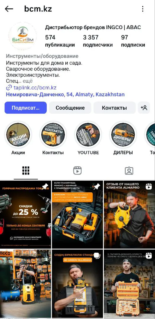 Запустили комплексный интернет-маркетинг с нуля: создали онлайн-каталог, YouTube-канал с демонстрацией инструментов, Instagram-аккаунт и мобильное приложение для дистрибьюторов. В результате получили более 3 300 подписчиков в Instagram, 222 подписчика на YouTube и стабильный поток — около 10 заявок ежедневно, что позволило клиенту масштабировать оптовое направление и усилить присутствие бренда INGCO на рынке Казахстана.