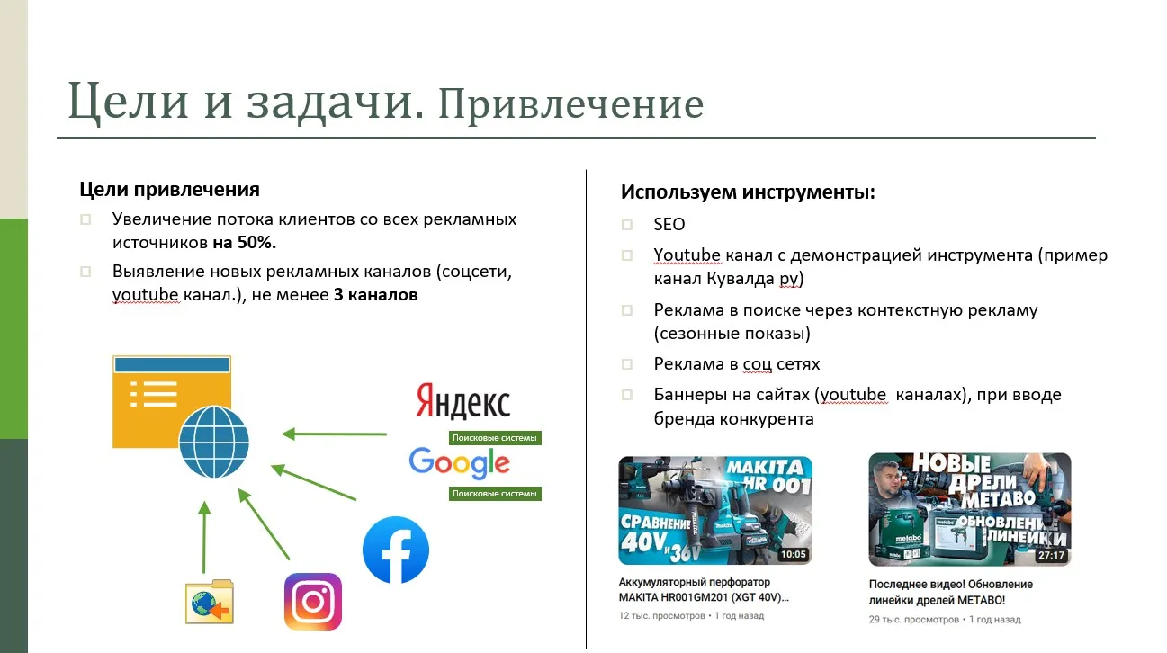 Запустили YouTube-канал, где показывали инструменты в действии и объясняли преимущества продукции. Эти видео использовались не только для органического продвижения, но и в рекламных кампаниях, что повысило доверие потенциальных клиентов и конверсию.